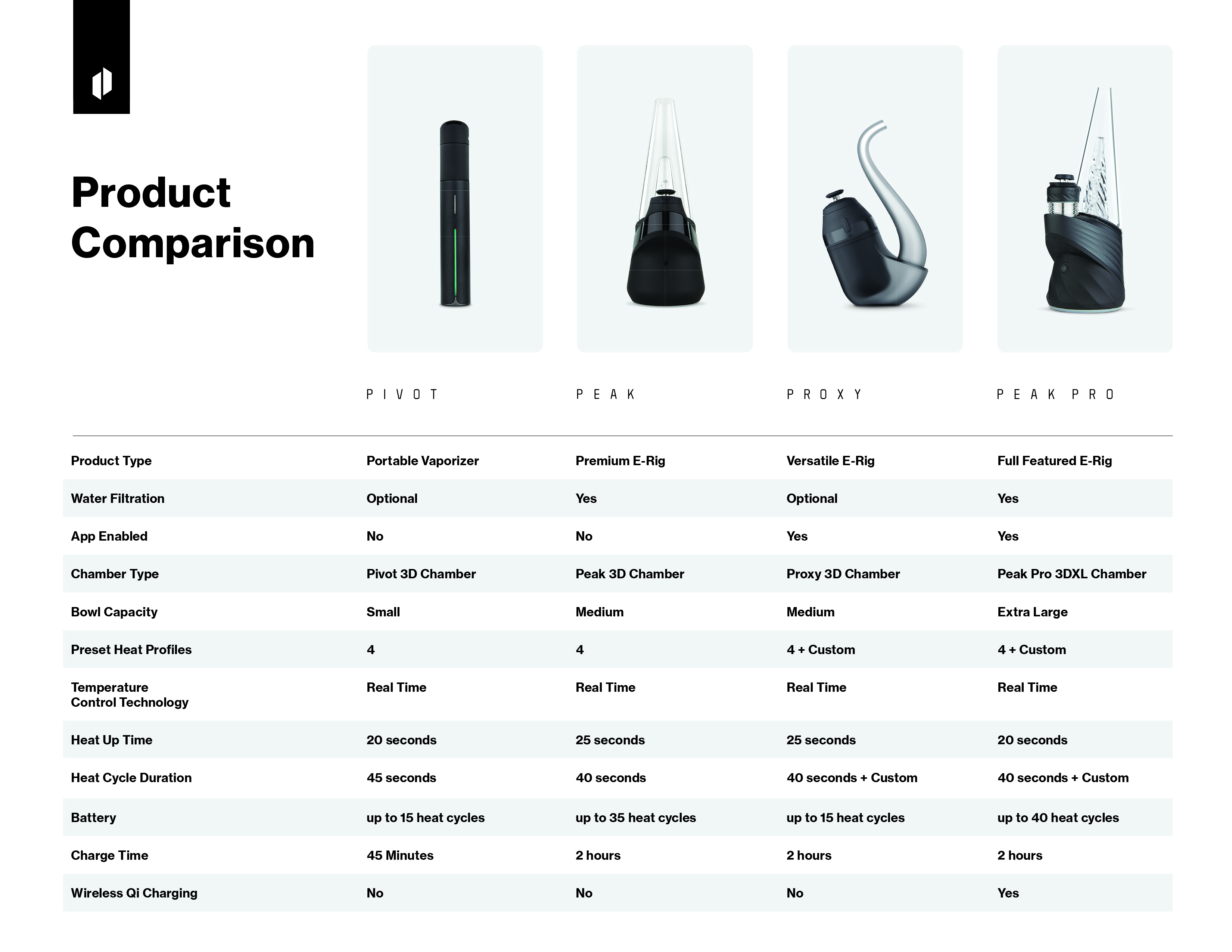 Think of New Peak as the maple-gold entry point: four presets, real-time temp control, simple one-button usage, and a medium bowl—great for shoppers who want signature Puffco performance without the app-driven deep dive. New Peak Pro is your red-oak upgrade: app connectivity for fully custom profiles, larger 3DXL chamber out of the box, wireless Qi charging, faster heat-up, and more total heat cycles per charge. In practice: guide casual concentrate fans to the New Peak; send the tinkerers, daily drivers, and “I want the most” buyers to the New Peak Pro. That split simplifies selling and keeps returns low.