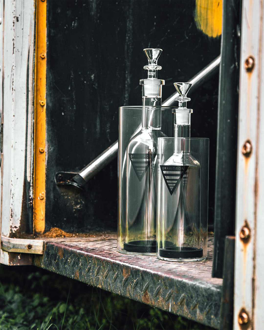 Stage a “modern bar” vignette: one tray, a lighter/torch stand, the Highball, a bubbler (Deco or Vesper), and the Deco Gravity Bong as the anchor. Group two to three complementary colors for instant eye candy and a subtle “collect ’em all” nudge.